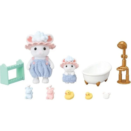 Epoch Sylvanian Families 5805 - Bath Time Bubble Siblings, Marshmallow Mäuse Badespaß Spielset