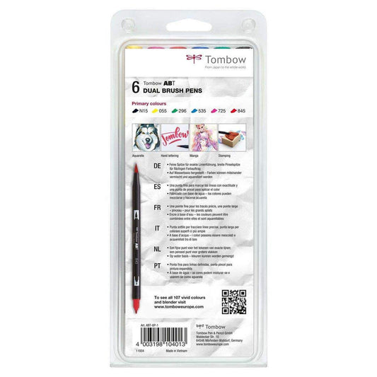 Tombow Fasermaler Dual Brush Pen mit zwei Spitzen 6er Set, primärfarben