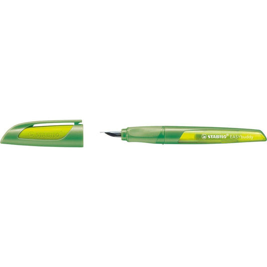 Schulfüller mit Linkshänder-Feder L - STABILO EASYbuddy in limette/grün - Schreibfarbe blau (löschbar) - Einzelstift - inklusive Patrone