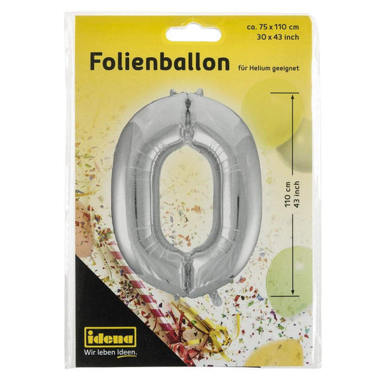 Idena Folienballon "0", 75 x 110 cm, für Helium geeignet, silber