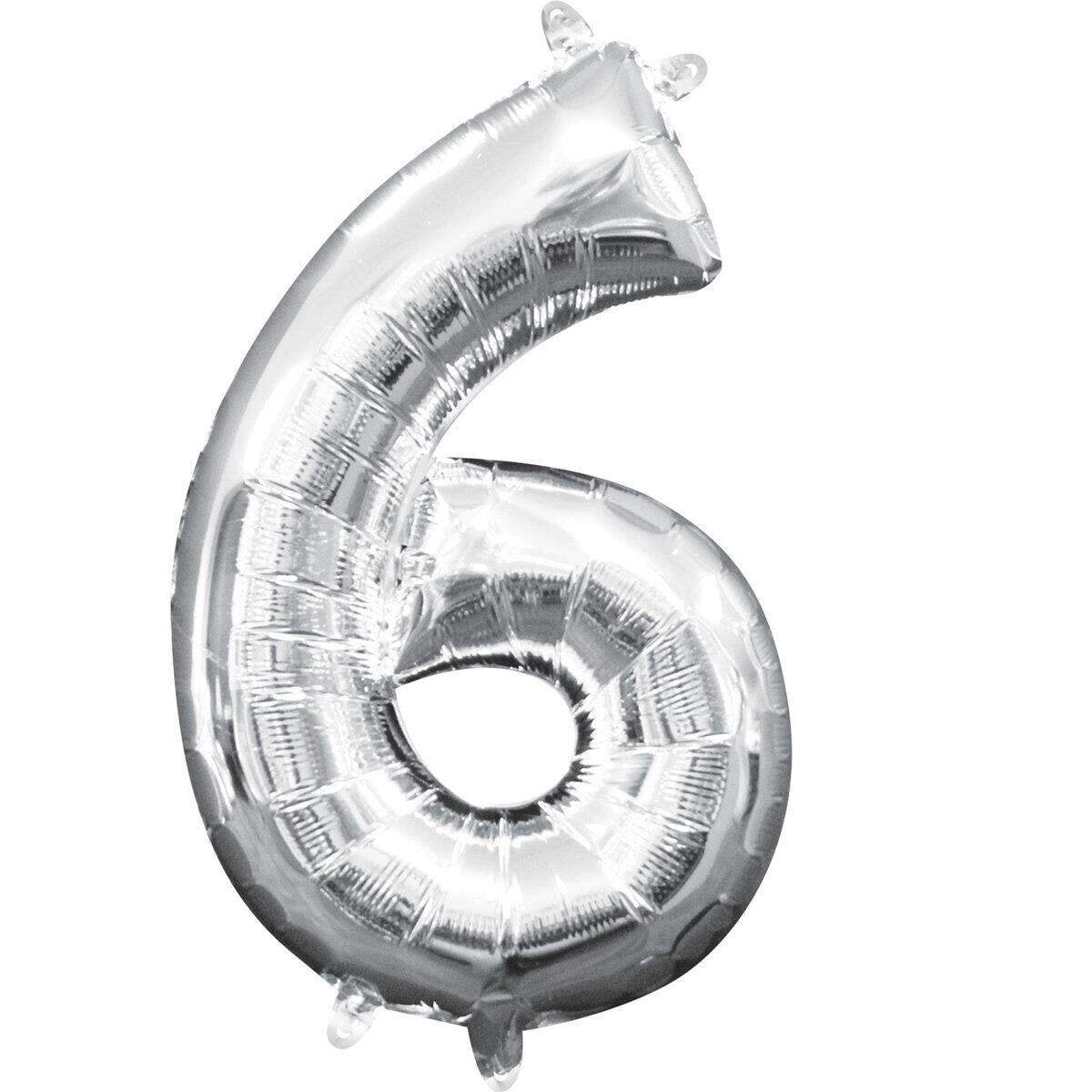 amscan Folienballon Zahl 6, ca. 22 x 35cm, Silber