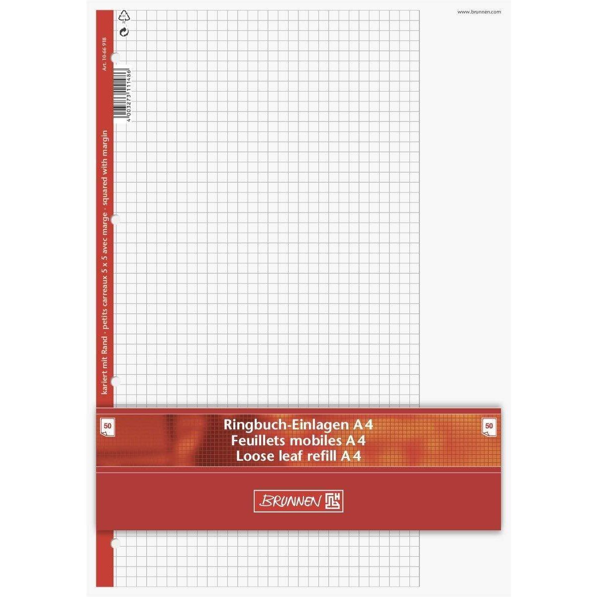 BRUNNEN Ringbucheinlagen A4 5 mm kariert, mit Rand, Lineatur 26