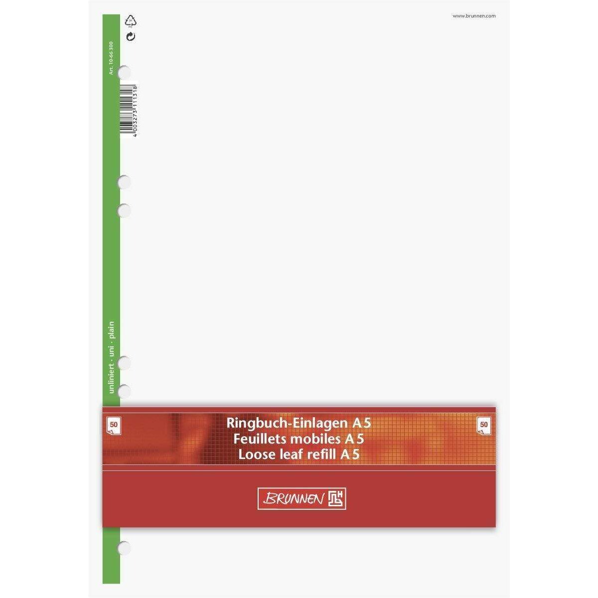 BRUNNEN Ringbucheinlagen, A5, blanco