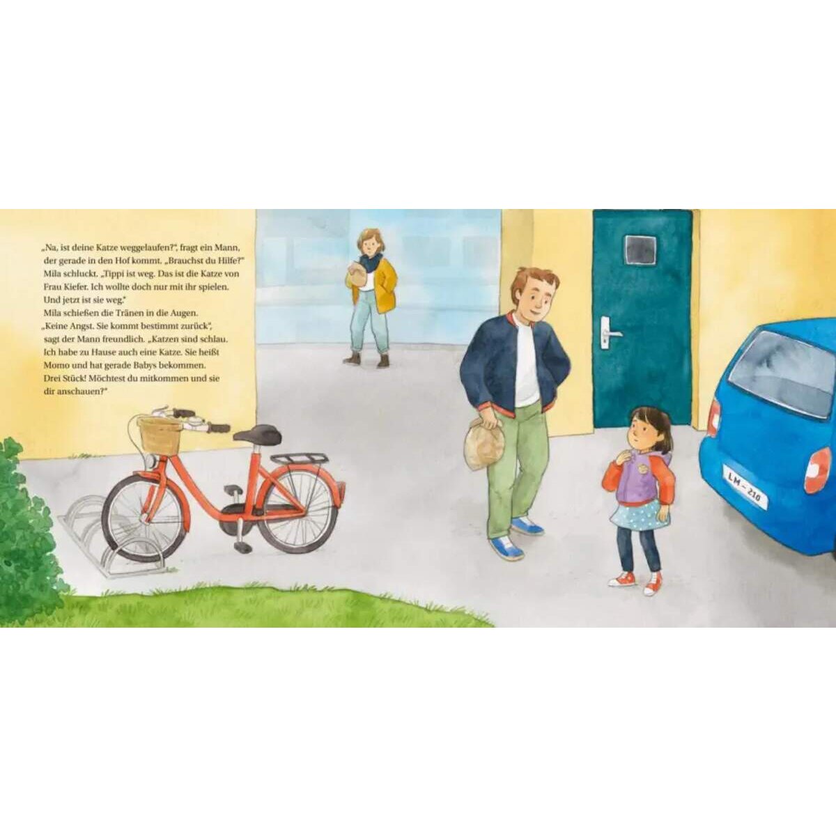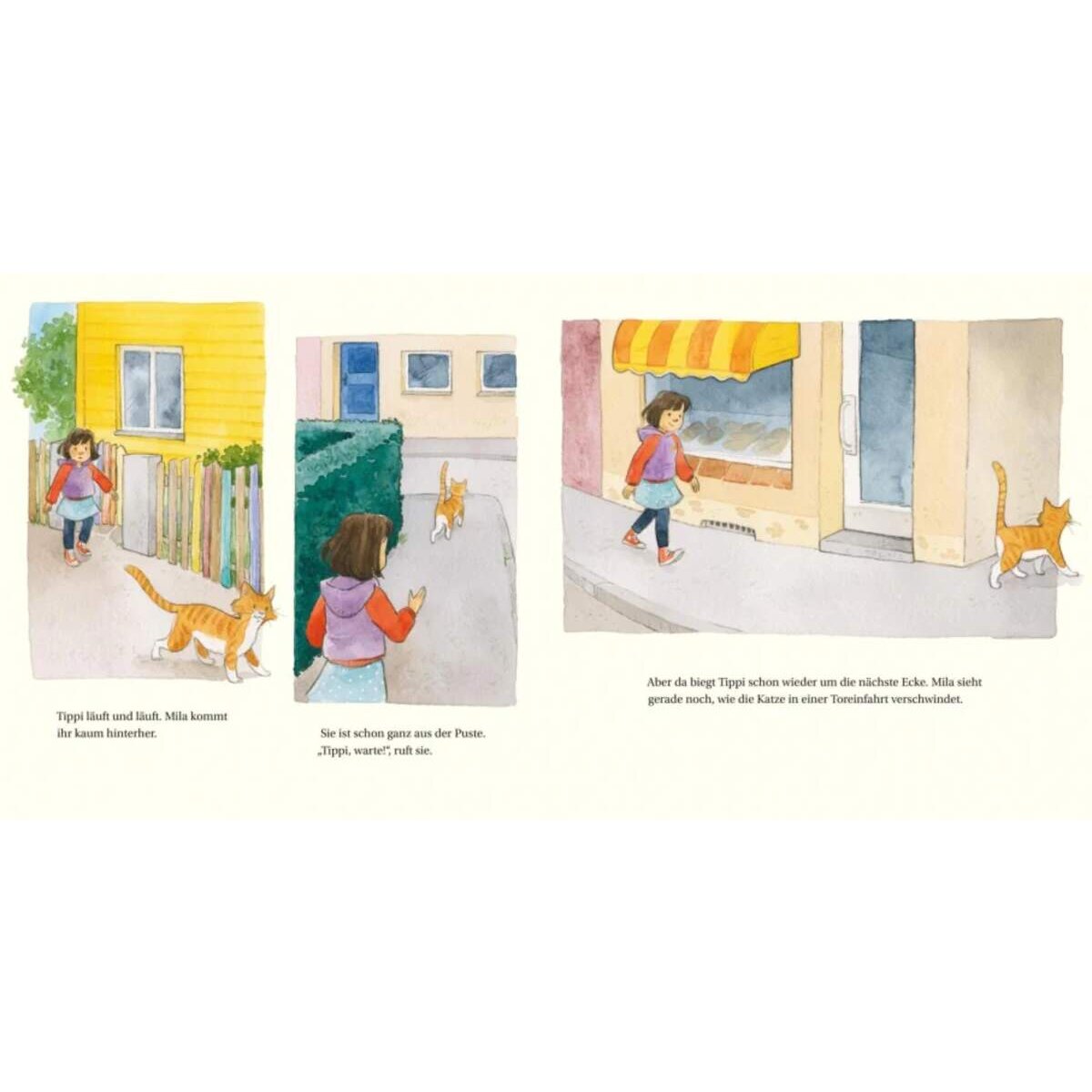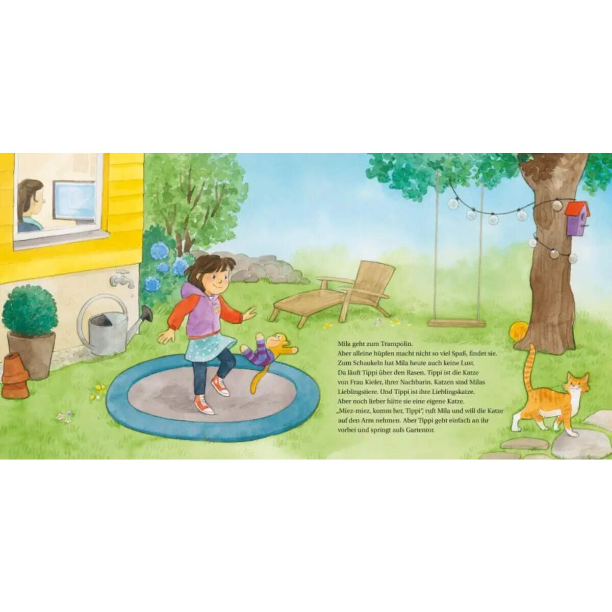 Alleine im Garten zu spielen macht keinen Spaß, findet Mila. Da sieht sie eine Katze und läuft ihr schnell hinterher. Obwohl sie eigentlich nicht alleine von zu Hause weggehen darf! Und auf einmal ist da ein Mann, der Mila ein eigenes Kätzchen schenken will, wenn sie mitkommt. Aber Mila weiß genau: Ich geh doch nicht mit jedem mit!