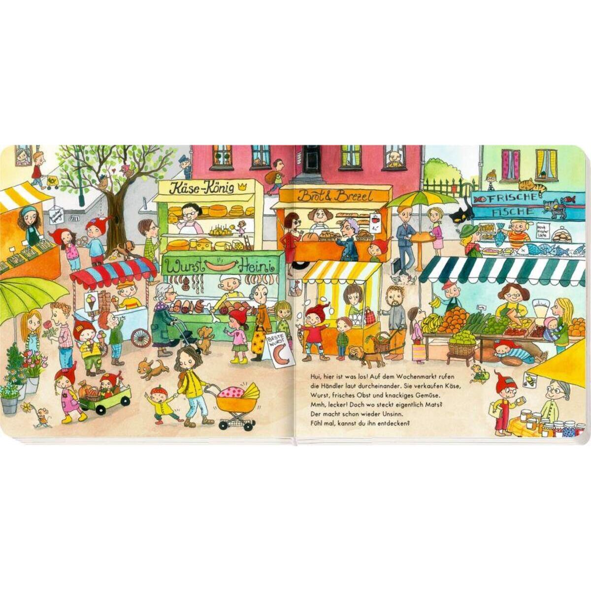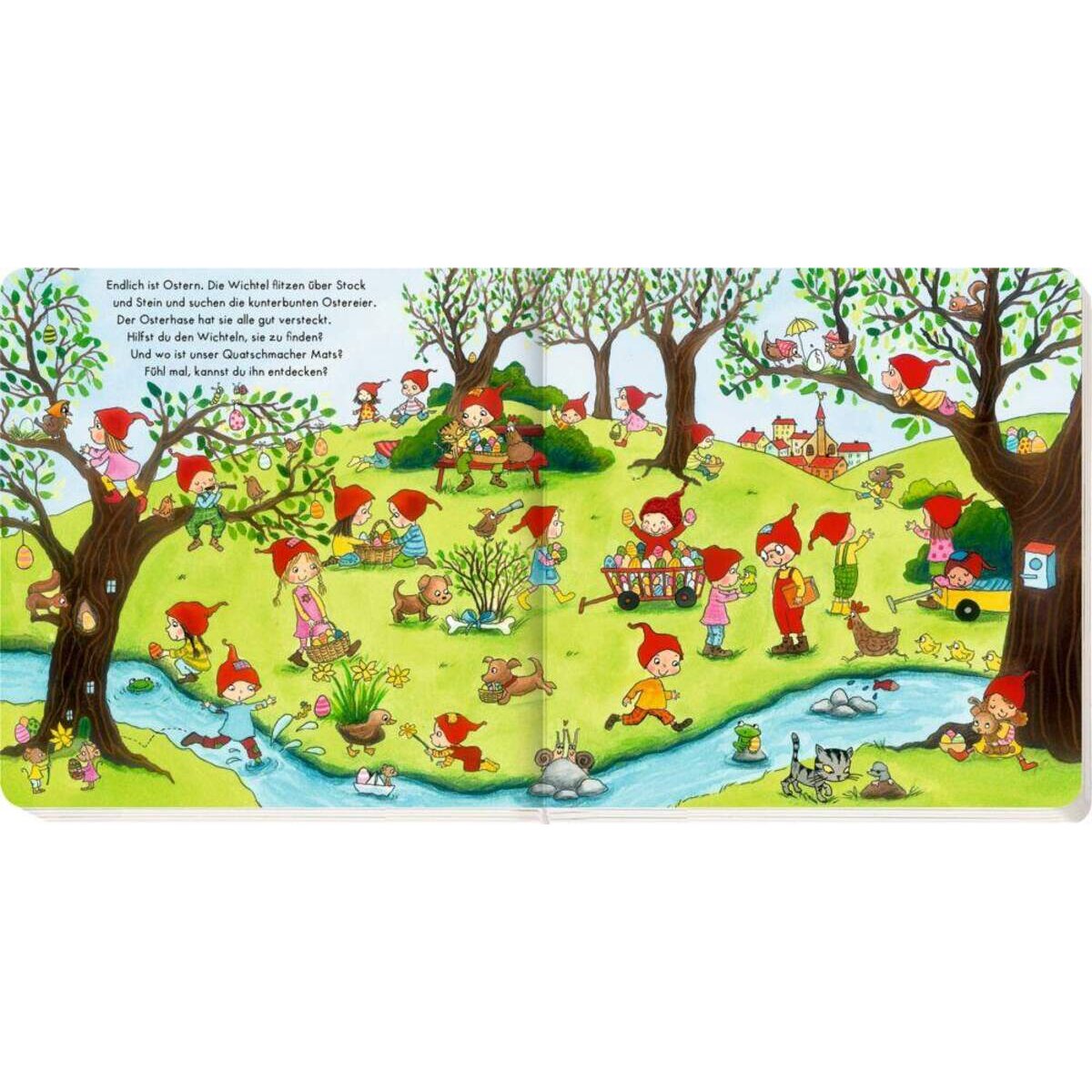 Was für ein Gewimmel und Gewusel! Hurra, der Frühling ist da! Die Wichtel toben im Garten, suchen kunterbunte Ostereier und machen ein Picknick am See. Einer hat immer Quatsch im Kopf - das ist Mats mit der flauschigen Zipfelmütze! Fühl mal, kannst du ihn entdecken? Ein munteres Wimmelbuch zum Immer-wieder-Ansehen! Diese 7 Wichtel findest du auf jeder Seite: Mats macht am liebsten Quatsch. Pontus ist ein echter Bücherwurm. Ole hat immer Hunger. Peer ist eine Schlafmütze. Kalle hat manchmal etwas Pech. Lissy kann einfach alles. Nisse ist noch ein Baby-Wichtel.