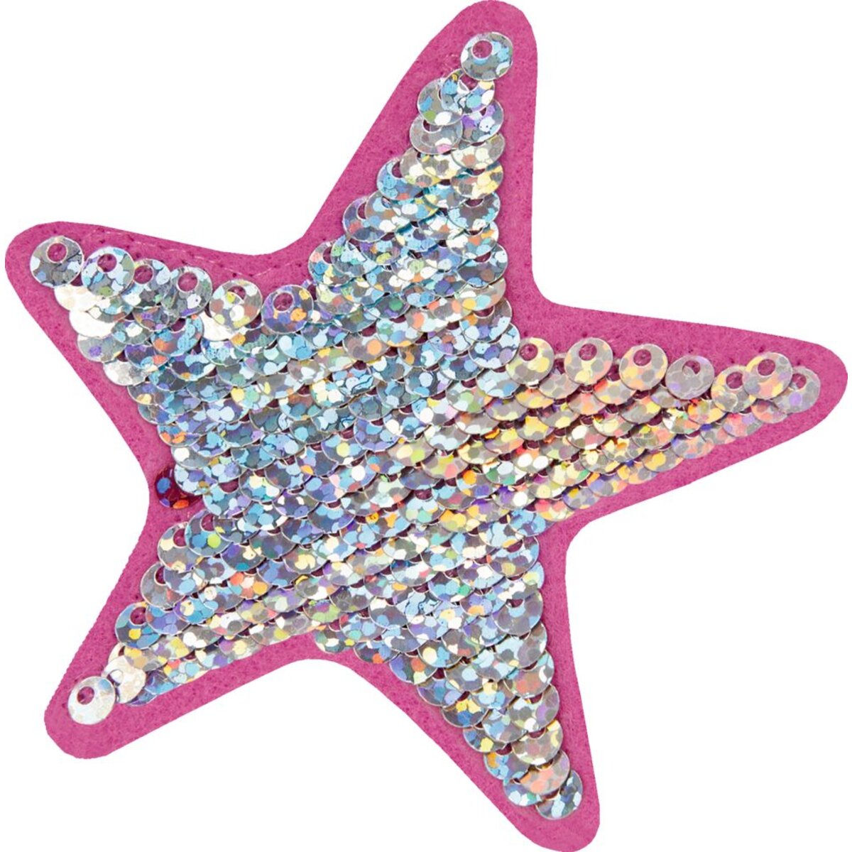 Einband: mit Holografiefolie und Wendepailletten-Patch in Sternform