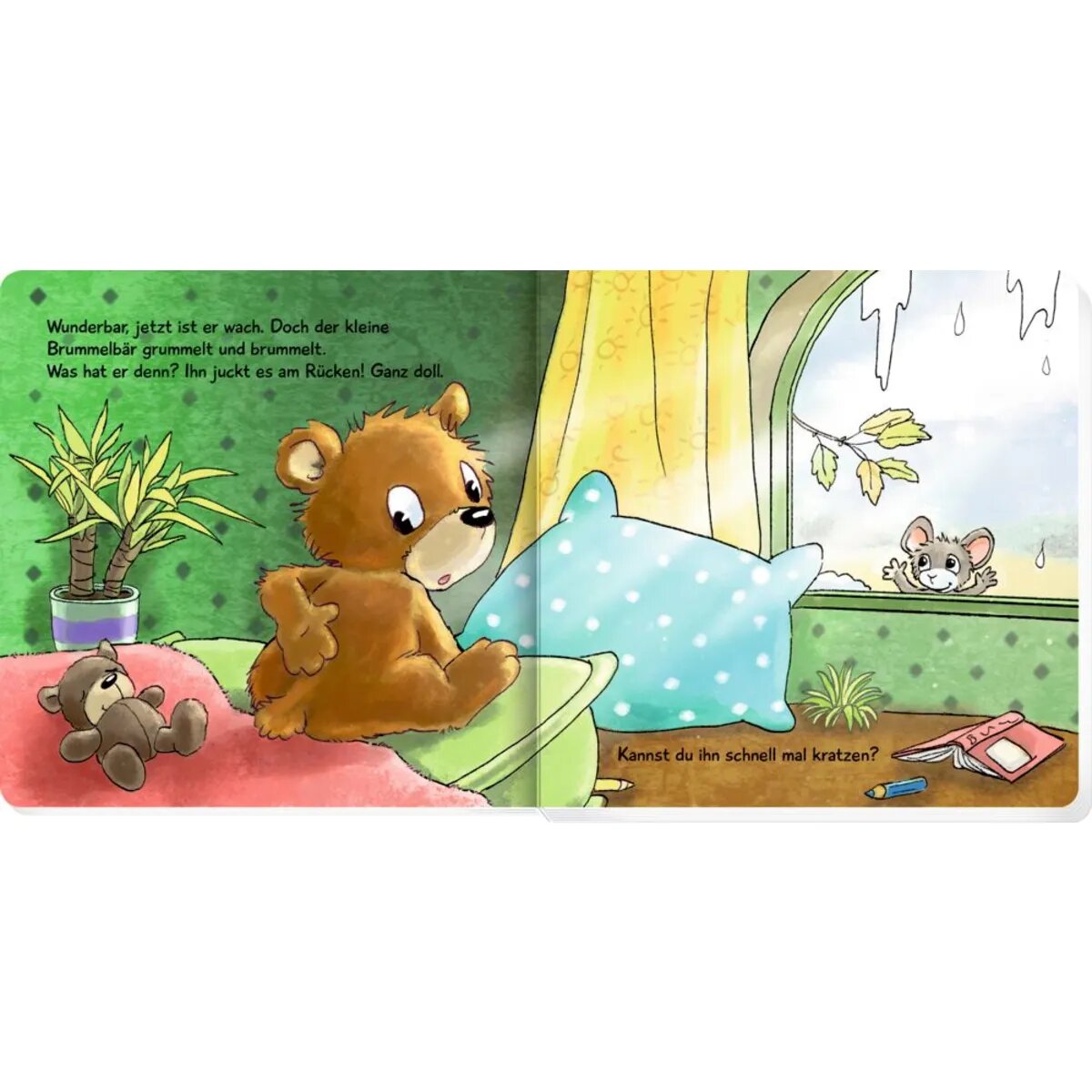Wer hilft dem kleinen Brummelbären? Ein Mitmach-Pappbilderbuch zum Klopfen, Schütteln und Kitzeln.