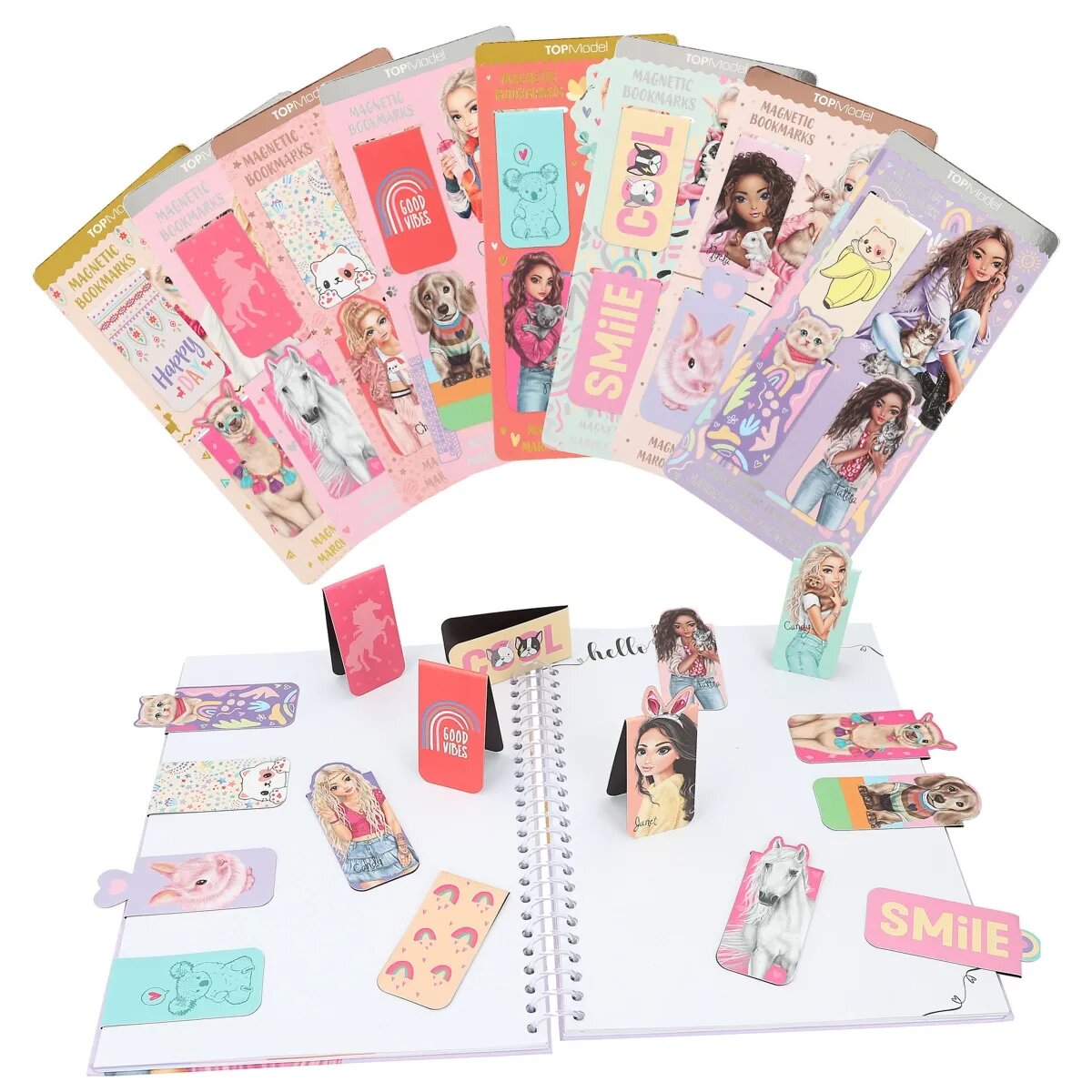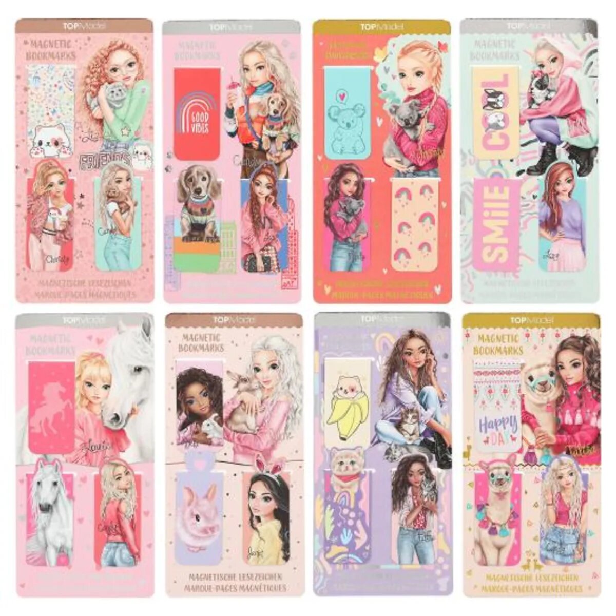 Stylish markiert: Mit den magnetischen TOPModel-Lesezeichen weiß man immer, auf welcher Seite man gerade ist. Mit süßen Model-Motiven, tierisch niedlichen Illustrationen, coolen Statements und auffälligen figürlichen Ausstanzungen. 8 Sets mit je 3 Lesezeichen.