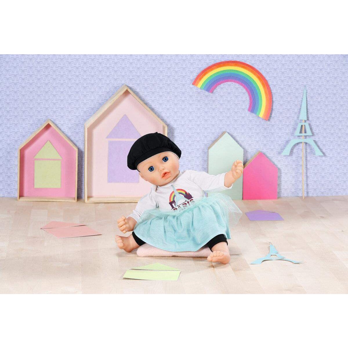 Dolly Moda Paris Look 43cm aus Shirt, Leggings, Rock und Mütze.