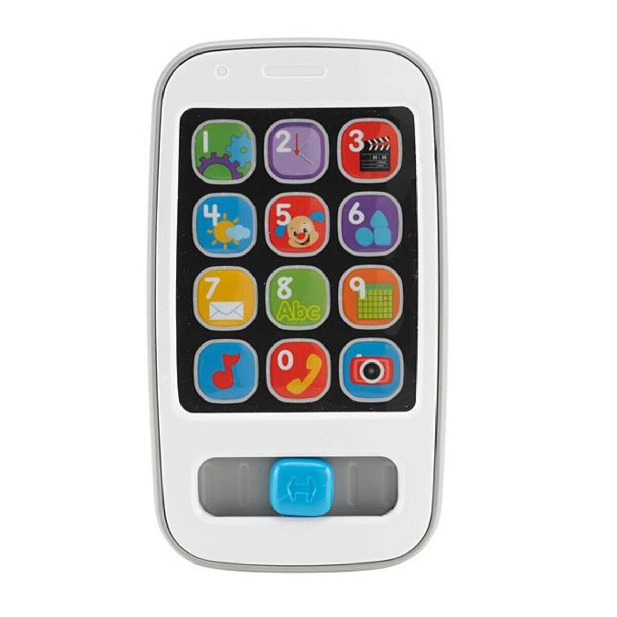Ein schickes Kinder-Smartphone mit jeder Menge toller Apps! Werden die wie App-Symbole gestalteten Tasten gedrückt, erklingen mehr als 20 Lieder und Sätze über Zahlen, das Zählen, Begrüßungen und mehr und Lichter blinken auf Das Kind kann außerdem den Schieber hin und her bewegen, um weitere Lieder und Geräusche zu aktivieren.