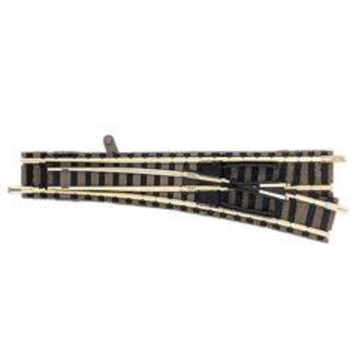 Normalweiche für Handbetrieb, rechts. Gleis 9136 dient als Gegenbogen und führt zum Parallelgleisabstand von 33,6 mm. Nachrüstbar mit Elektroantrieb.
