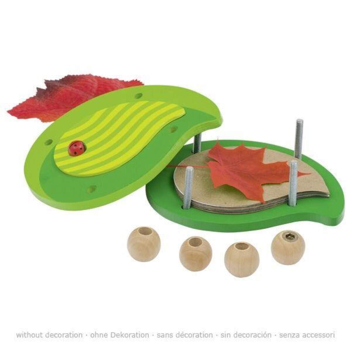 Hurra, Hurra, der Herbst ist da. Mit den griffigen Schraubverschlüssen aus Holz und die Pappeinlagen lassen sich ganz einfach Blumen- und Blätterabdrücke auf Papier pressen.