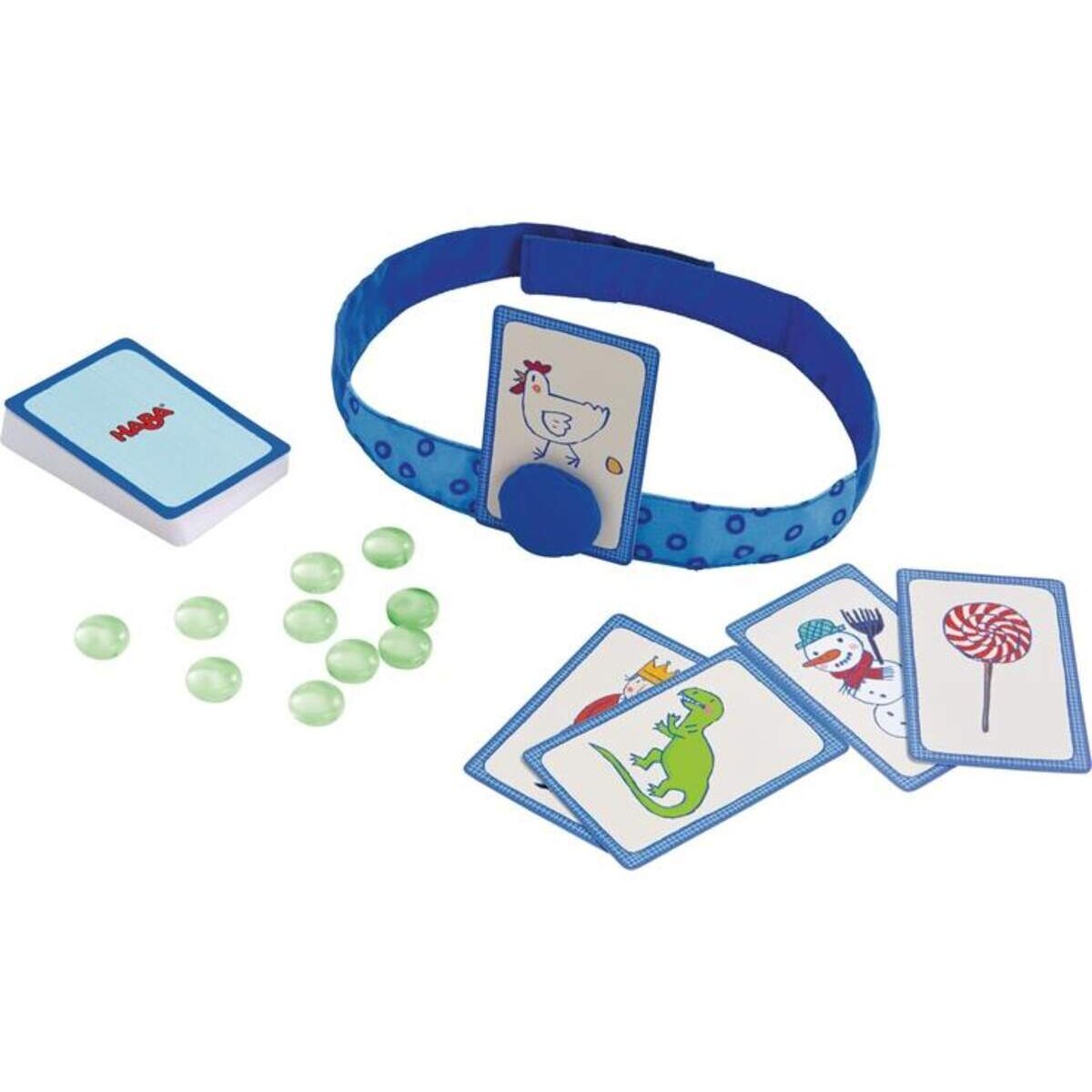 Inhalt: 1 Stirnband, 1 Fragezeichen, 40 Karten, 10 Zählsteine, 1 Spielanleitung.