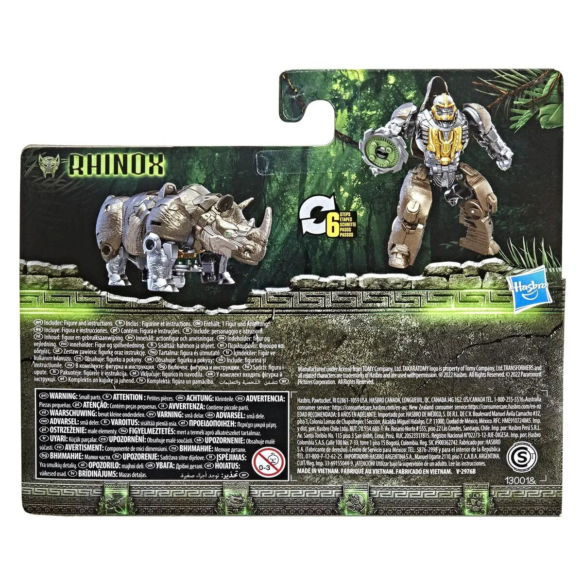 Rhinox, der starke Maximal Krieger, stürmt mit seinen Autobot und Maximal Verbündeten an seiner Seite in die Action. Klassische Transformers Roboter und Bestien Roboter schließen sich zu einer epischen Allianz zusammen! Die Battle Changers Rhinox Figur kann mit Beast Alliance Bestien-Waffen und Bestien-Rüstung kombiniert werden, um sie für das Battle auszustatten. (Jeweils separat erhältlich. Je nach Verfügbarkeit.) Der Kampf auf der Erde findet nicht länger zwischen heldenhaften Autobots und bösen Decepticons statt.Transformers: Aufstieg der Bestien stellt mysteriöse neue Fraktionen wie die Maximals, Predacons und Terrorcons in einem epischen Abenteuer der 90er-Jahre vor. Mit Beast Alliance Spielzeug zum Film Transformers: Aufstieg der Bestien kann die ultimative Allianz der Bestien erschaffen werden.TRANSFORMERS and all related characters are trademarks of Hasbro and are used with permission. TRANSFORMERS sowie alle dazugehörigen Charaktere sind Marken von Hasbro und werden mit Genehmigung verwendet. © 2022 Paramount Pictures Corporation. All Rights Reserved. Licensed by Hasbro.© 2022 Paramount Pictures Corporation.Alle Rechte vorbehalten. Lizenziert durch Hasbro.[PRODUCT INCLUDES LIST] TRANSFORMERS and all related characters are trademarks of Hasbro and are used with permission. © 2022 Paramount Pictures Corporation. All Rights Reserved. Licensed by Hasbro.