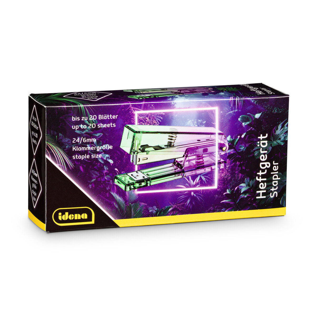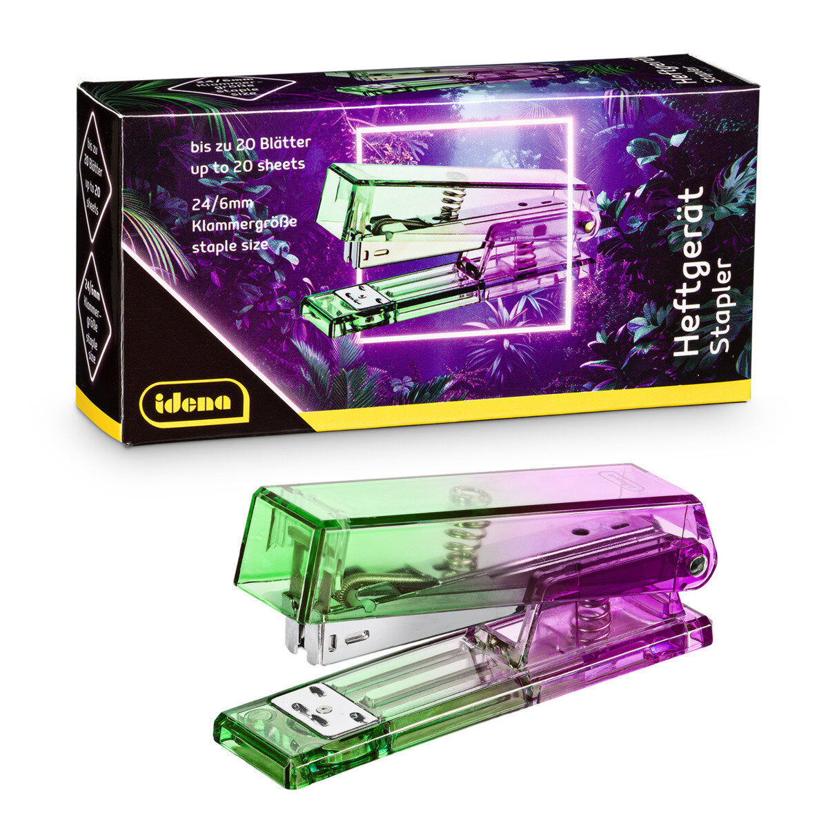 Idena Heftgerät Bicolor für Klammern 24/6 bis zu 20 Blätter lila grün 129 x 34 x 64 mm