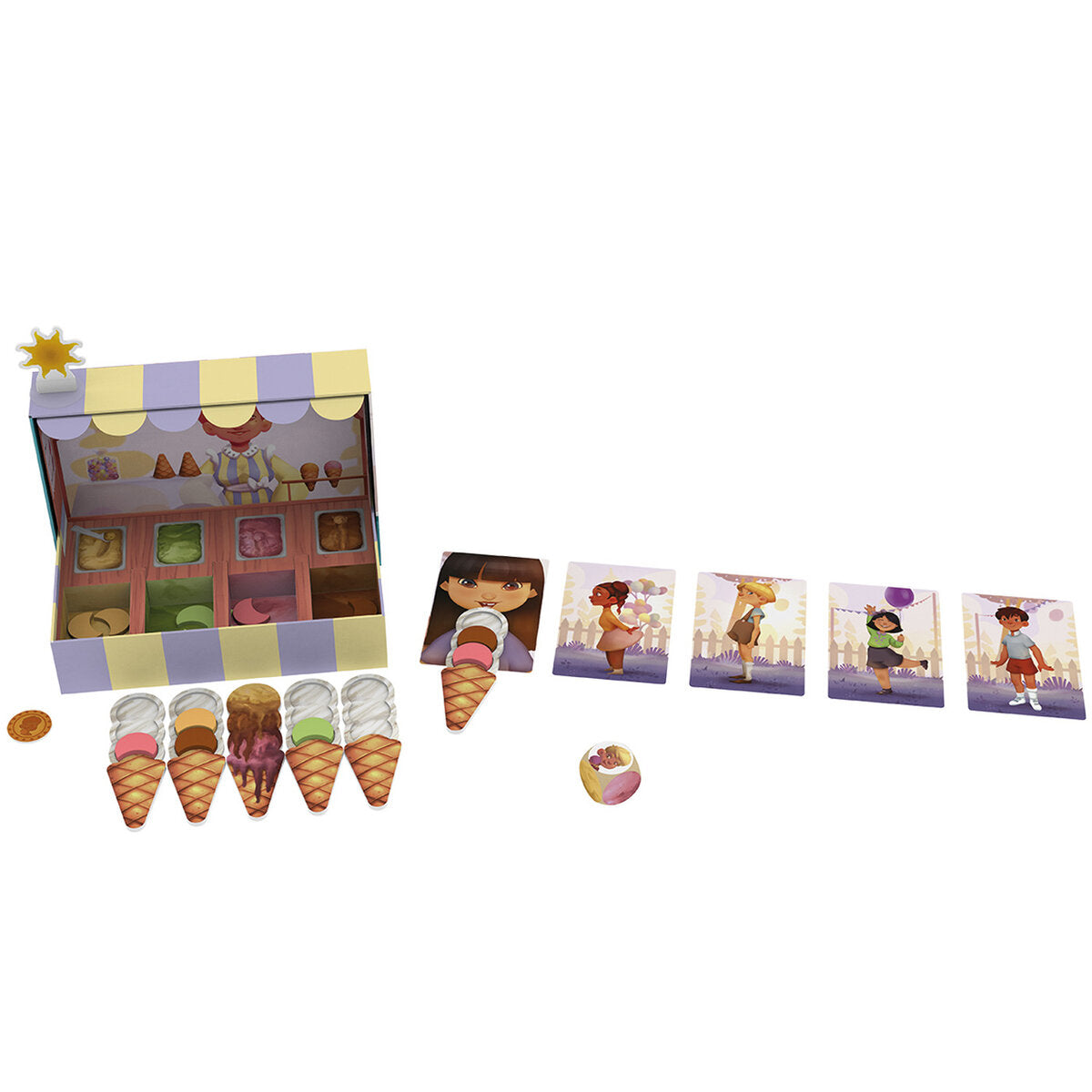Die Kinder würfeln reihum, um die Eiswaffeln zu füllen. Aber Vorsicht! Pro Waffel darf jede Geschmacksrichtung nur einmal vorkommen. Außerdem ist es ganz schön heiß heute ... wenn sich die Waffeln schnell füllen, aber die Sonne zu nahe kommt, schmilzt das Eis ...