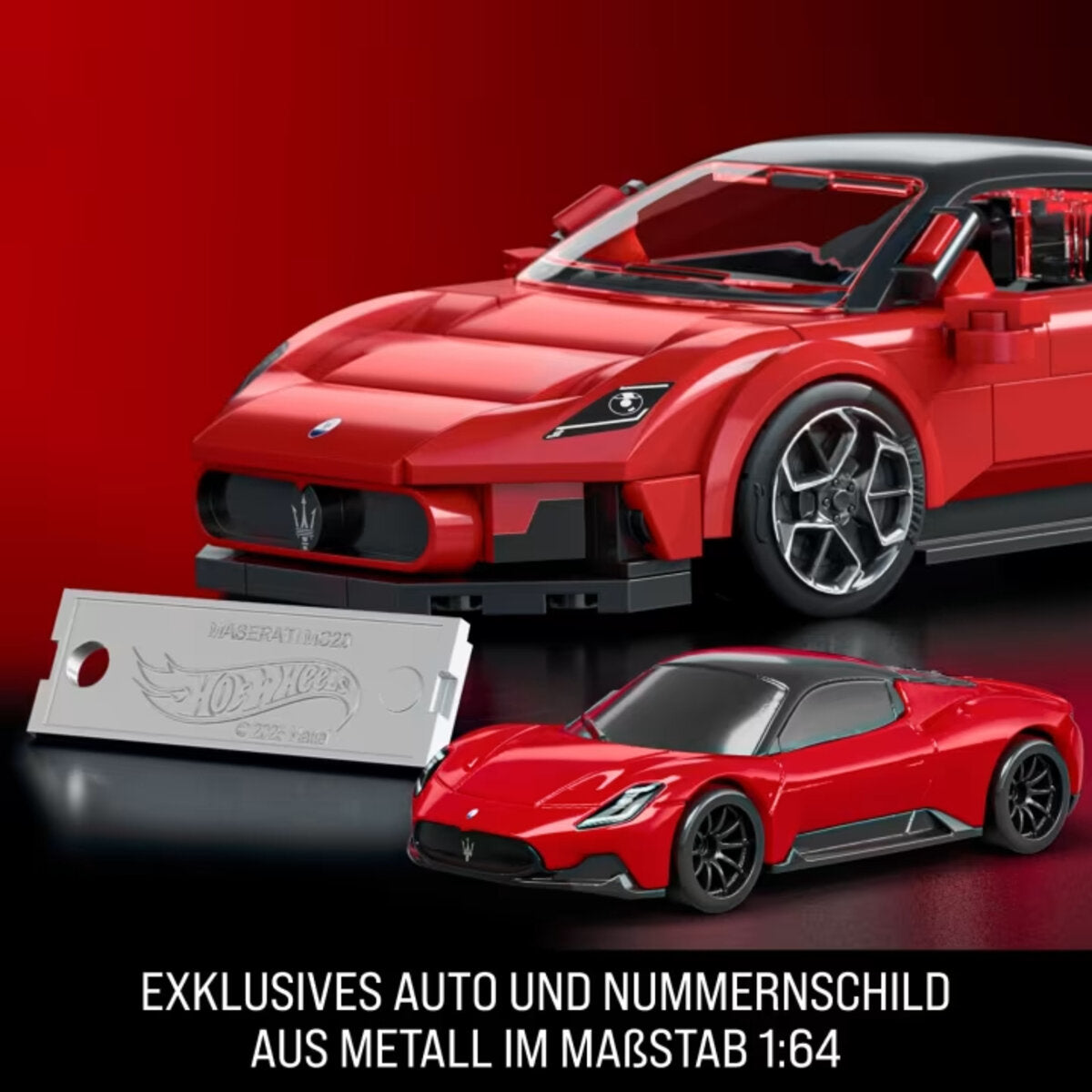 Mit Vollgas in die Zukunft mit dem nachbaubaren Maserati MC20 im Maßstab 1:32 von Mattel Brick Shop. Dieses detailreiche und authentische Set umfasst Aufkleber zur individuellen Gestaltung, 2 Radkappen-Sets, ein Hot Wheels Signature Plate“ aus Metall sowie ein exklusives passendes Die-Cast-Auto. Kombiniert mit allen anderen Autos der Speed Serie entsteht eine Sammlung zum Ausstellen.