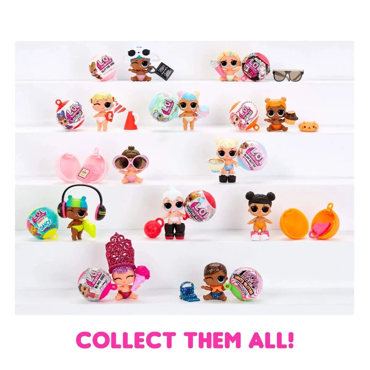 Jeder Sooo Mini! Die LOL Surprise Lil Sisters-Puppe hat einen Mini-LOL-Ball für NOCH MEHR Auspacken als je zuvor! Finden Sie Lieblingsfiguren wie Hoops MVP aus der allerersten LOL Surprise-Serie sowie Lils aus anderen Fan-Lieblingsserien wie Glitter, Dance Dance Dance, All-Star Sports und mehr!
