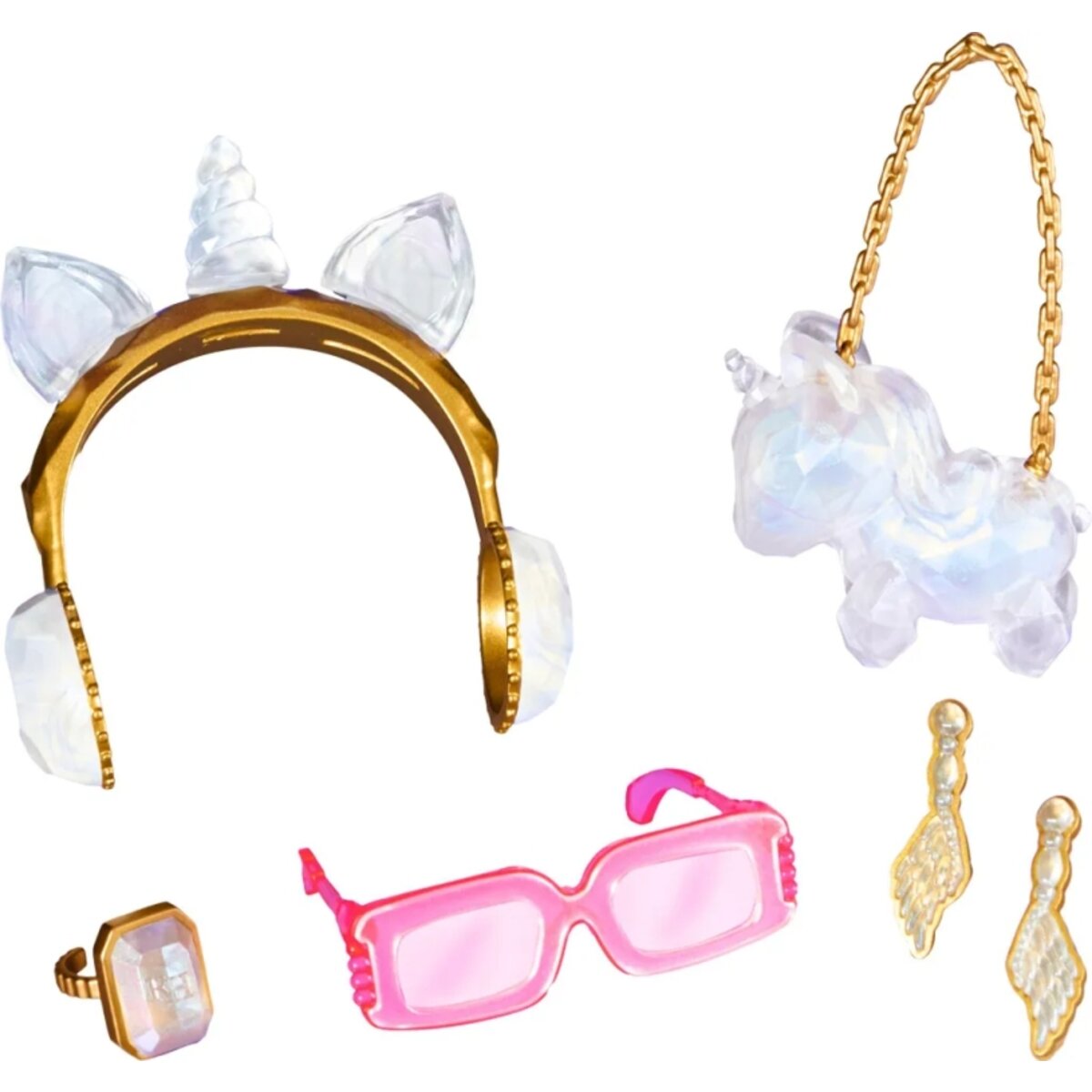 Dies ist das Crystal Fashion Puppe Amaya Raine von Regenbogen hoch. Diese farbenfrohe Modeduppe wird mit Modeaccessoires, einer magischen Flüssigkeit mit Formen und einem magischen Tier ausgestattet.