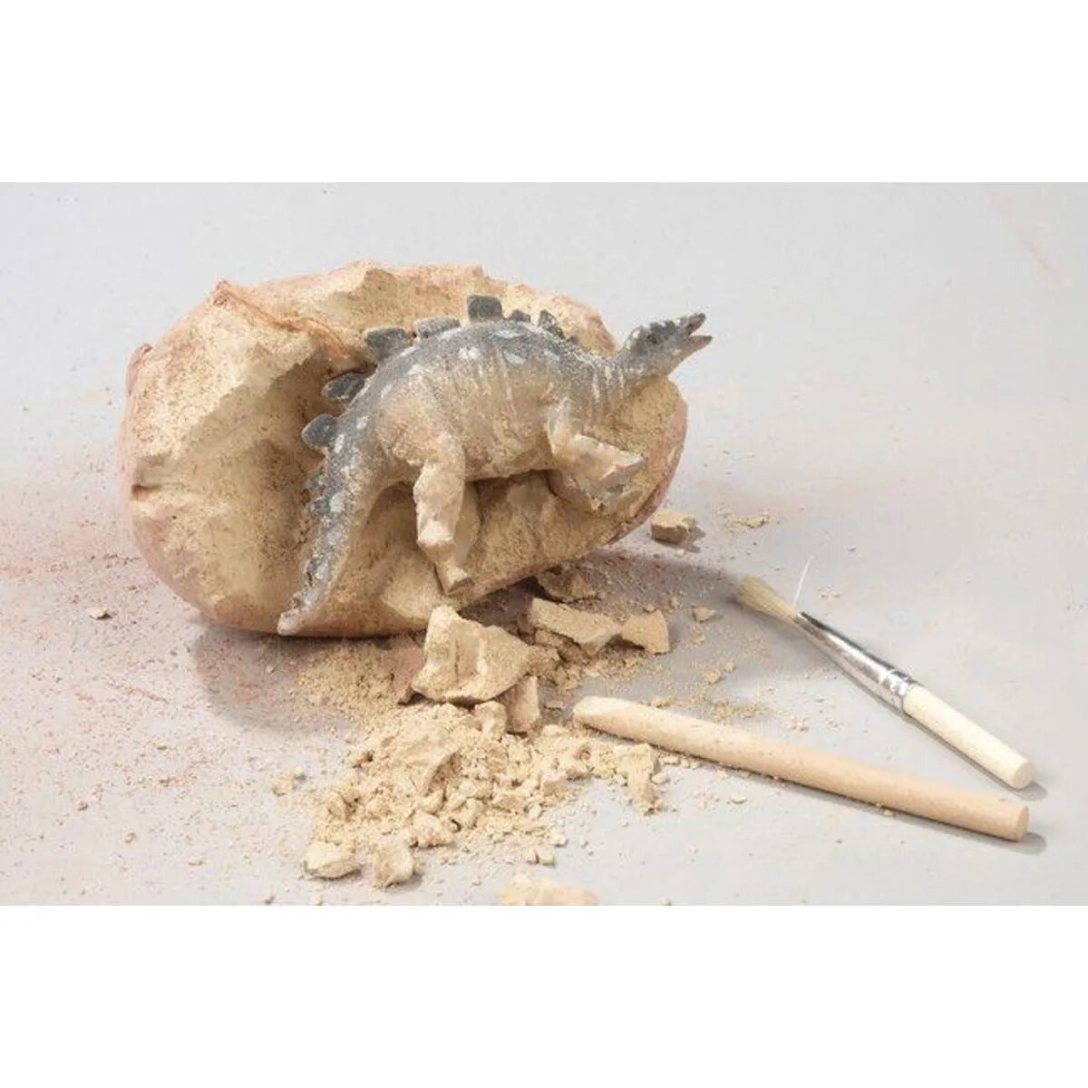 Für angehende Paläontologen: Im Gips-Ei verbirgt sich ein kleiner Dino, der Hilfe beim Schlüpfen braucht.