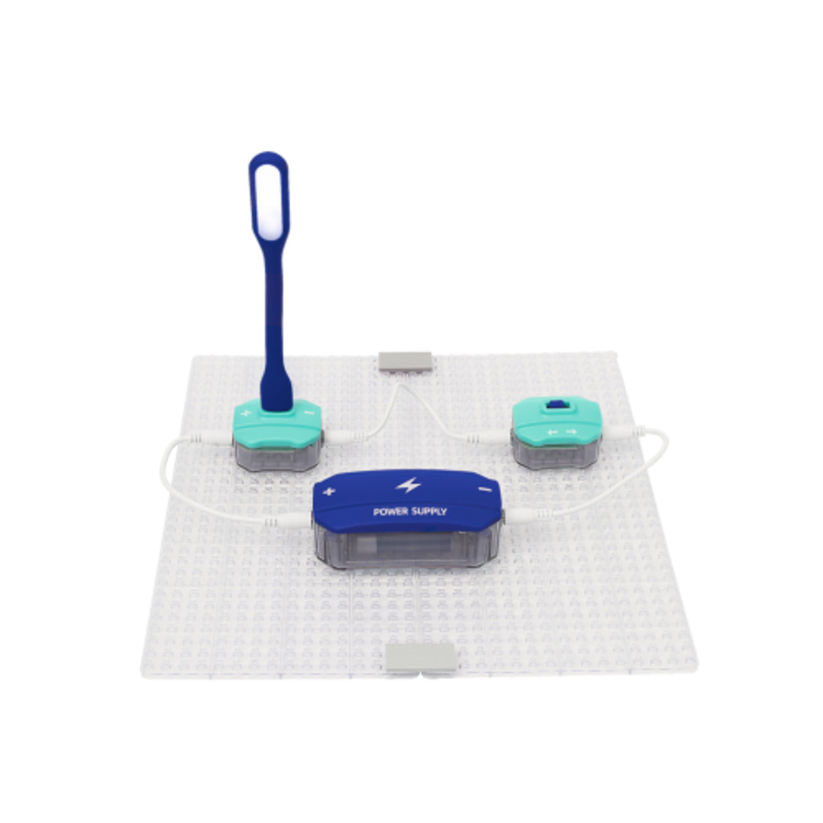 Was ist Elektrizität? Das erklärt dieser große Bausatz ganz einfach: Elektrizität entsteht durch die Ladung von winzigen positiven und negativen Teilchen. Den Fluss dieser Elektronen bezeichnet man als elektrischen Strom. Die Teilchen wandern durch Drähte im Inneren der Kabel vom Minuspol zum Pluspol. Dabei fließt der Strom, welcher Propeller zum Fliegen, Lampen zum Leuchten oder Töne aus einem Lautsprecher erklingen lässt.