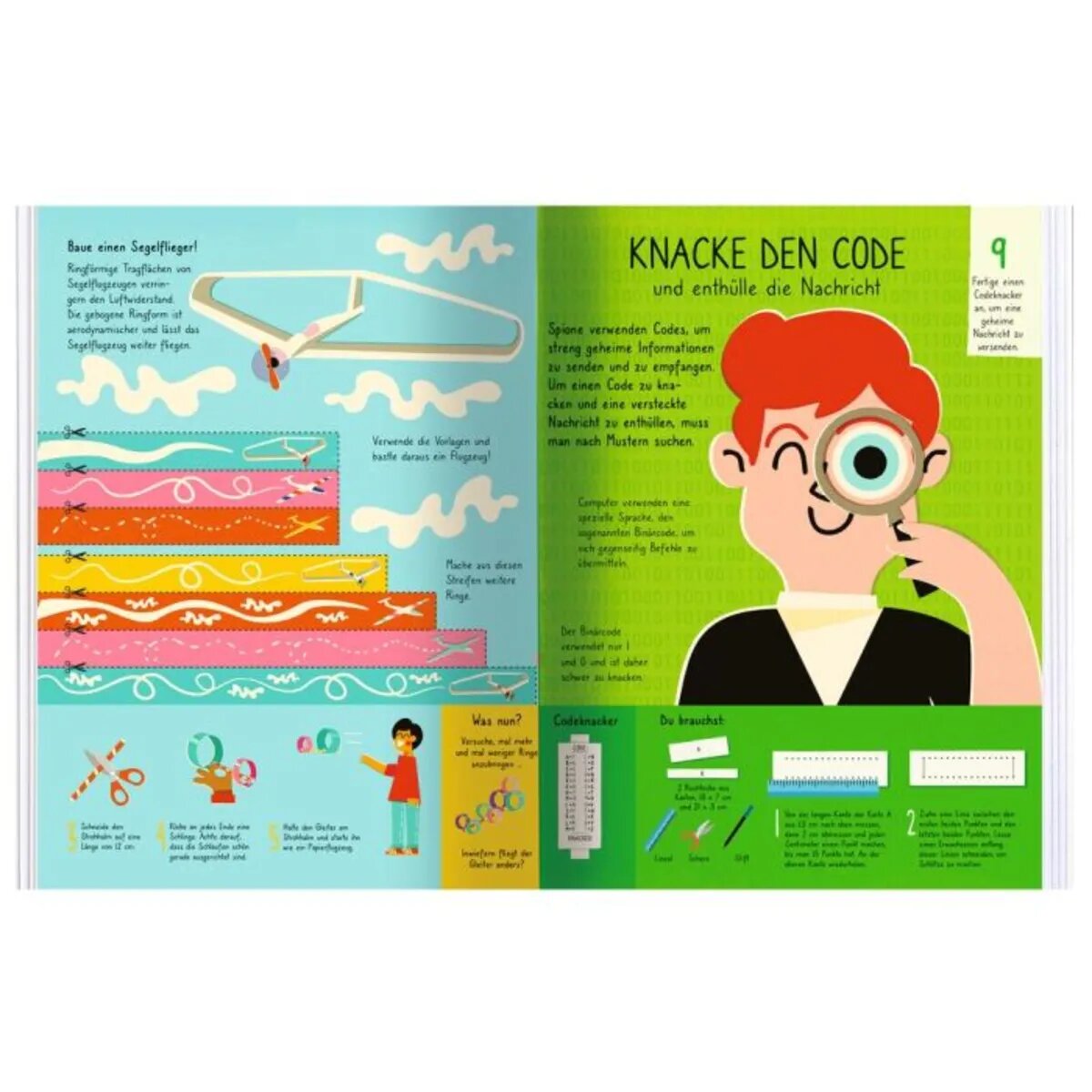 Dieses Buch erfindet sich im wahrsten Sinne des Wortes neu: Seite für Seite können Kinder ab 8 Jahren insgesamt 30 geniale Erfindungen nachbasteln. So verwandelt sich jede Seite in ein cooles Experiment - zum Thema Schwerkraft, den Fliehkräften oder chemischen Reaktionen, von der bionischen Hand bis zur Rakete. Der untere Teil der Seite wird herausgetrennt und kann am Ende wieder zusammengebunden werden, sodass die Nachwuchswissenschaftler*innen die Anleitungen immer wieder zur Hand nehmen können.