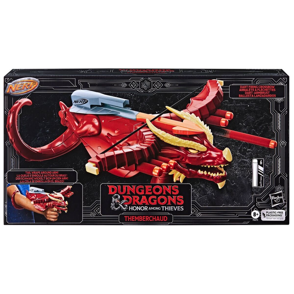 Der Nerf Dungeons & Dragons Themberchaud Armbrust-Blaster fängt die Magie aus dem Dungeons & Dragons Film Ehre unter Dieben und die Spannung des beliebten D&D Rollenspiels ein. Die Armbrust feuert 1 Nerf Elite Dart ab und bietet aktiven Spielspaß. Der Blaster kommt im Look von Themberchaud, dem roten Drachen, der in den Höhlen des Unterreichs aus D&Ds vergessenen Reichen wertvolle Schätze hortet. Das Abenteuer in der fantastischen Welt von D&D kann mit einer Nerf D&D Kollektion fortgesetzt werden. Die Armbrust verfügt über einen Drachenschwanz, der sich um den Arm des Spielers legt, um noch abenteuerlicher aufzutreten. Der Blaster enthält 6 Nerf Elite Darts und bietet Aufbewahrungsmöglichkeiten für die Darts. Um einen Dart abzufeuern, wird die Sehne nach hinten gezogen, 1 Dart eingelegt und der Abzug gedrückt. Dies ist das perfekte Geschenk für Kinder ab 8 Jahren, die gerne in fantasievolle Rollenspiele eintauchen. Eine Brille wird empfohlen (nicht enthalten). Keine Batterien erforderlich. Copyright 2023 eOne und Paramount Pictures Corporation. Alle Rechte vorbehalten. Copyright 2023 Wizards of the Coast. Hasbro sowie alle dazugehörigen Begriffe sind Marken von Hasbro.