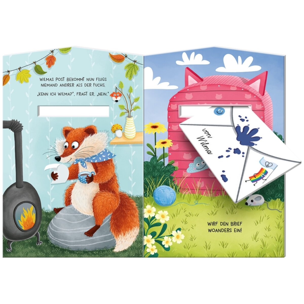 Wilma Waschbär schreibt schön schief Max, dem Mäuschen, einen Brief. Wilma hat nämlich Käsekuchen gebacken und möchte Max dazu einladen. Doch, oje: Statt bei Max landet der Brief beim alten Dachs! Und dann beim Pferd, beim Fuchs, der Katze und dem Schaf. Ob Max seinen Brief noch bekommen wird und gemeinsam mit Wilma Käsekuchen futtern kann? Löse Wilmas Brief aus der ersten Seite und wirf ihn von Briefkasten zu Briefkasten. Dann findest du es heraus!
