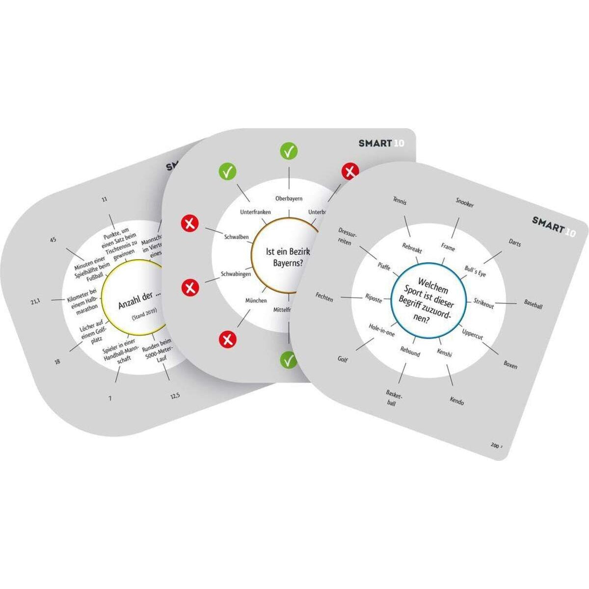 SMART 10 Zusatzfragen 2.0 200 neue Fragen ... ...und 2000 neue Antworten für das revolutionäre Quizspiel SMART 10. Einfach den Kartensatz mit dem aus der Smartbox des Originalspiels tauschen und schon steht weiteren spannenden Quiz-abenden nichts mehr im Weg.