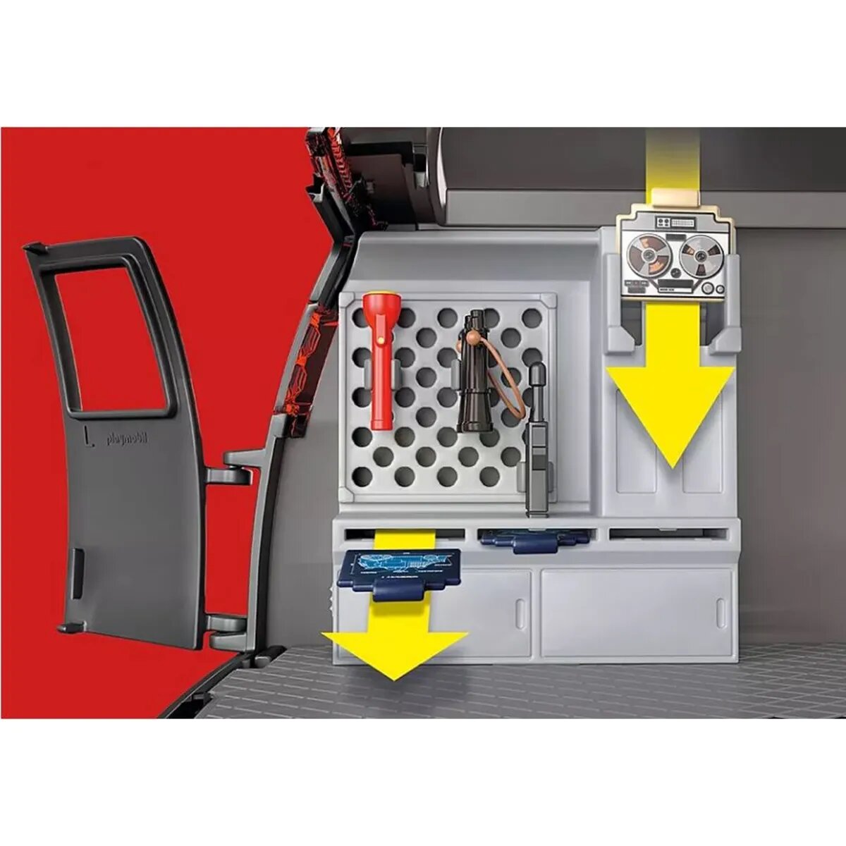 Das A-Team, das sind vier Ex-Elitesoldaten in ungewöhnlicher Mission. Zu Unrecht verurteilt und selbst auf der Flucht vor der Militärpolizei helfen sie anderen Menschen in Not. Also wenn es mal ein Problem gibt, hilft sicher das A-Team. Neben Hannibal, B.A., Face und Murdock ist das fünfte Teammitglied mit Sicherheit der megacoole A-Team Van. Mit seiner umfangreichen Innenausstattung mit Monitor, Schweißgerät, Einsatztafeln, Schrank und Lochwand für verschiedenes Zubehör ist der Van für jeden Spezialeinsatz bestens ausgestattet. Natürlich finden alle Teammitglieder im Inneren des Wagens Platz. Für das leichtere Bespielen können die Dacheinsätze abgenommen werden. Wie das Original hat auch der PLAYMOBIL A-Team Van die ikonische dreifarbige Lackierung, eine verlängerte Sonnenblende und rote Felgen. Ein echtes Highlight nicht nur für Filmautosammler und A-Team-Fans!