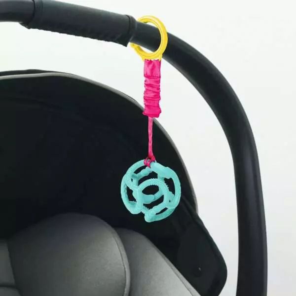 Allererster Greif- und Beißball mit abwechlungsreichen Noppen und Texturen sowie einer praktischen Befestigung für unterwegs