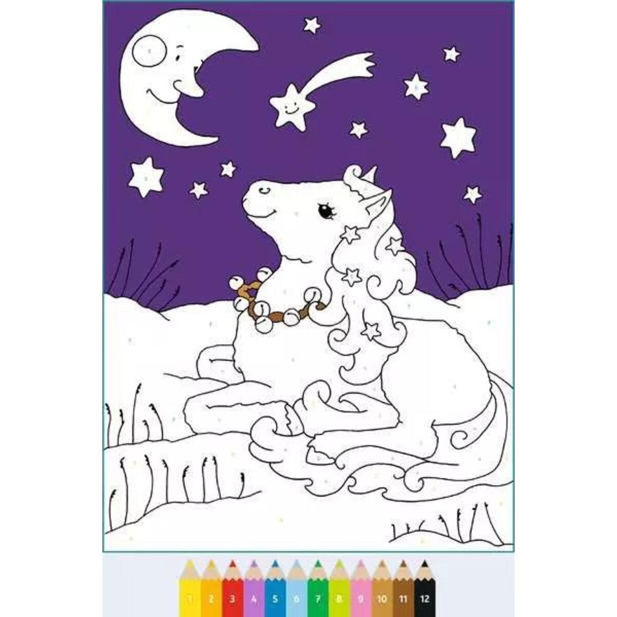 Das Malbuch enthält viele magische Ausmalmotive rund um das Thema Zauberponys: beim Spielen, sich Verkleiden und Träumen im Mondschein. Die altersgerechten Motive und nummerierten Ausmalfelder machen das Weitermalen der Bilder kinderleicht. So entstehen im Handumdrehen perfekte Kunstwerke. Die Zahlen sind so zart, dass sie beim Übermalen verschwinden. Die Farbpalette der Motive entspricht handelsüblichen Stiftpackungen.