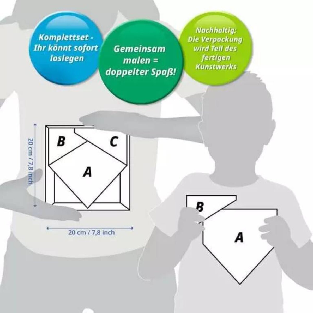 - Die praktische Verpackung ergibt mit den drei zusammengesetzten Maltafeln ein buntes Dekoelement