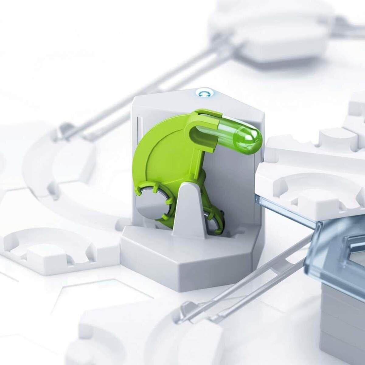 Mit dem elektronischen GraviTrax POWER Element Lever können Kugeln nacheinander wiederholt auf höhere Ebenen der GraviTrax Kugelbahn gehoben werden.Immer wieder Höhe zurückgewinnen ohne manuelles Eingreifen! Das Gravitrax POWER Element Lever hebt Kugeln bis zu 4 Höhensteine nach oben und wird nach jeder Kugel automatisch in seine Ausgangsposition zurückgestellt. Der Spieler kann hierdurch während eines Durchlaufs mehrere Kugeln nacheinander auf höhere Bahnebenen zurückbefördern. Kombiniert mit einem beliebigen Starter-Set lässt sich der Lauf der Kugeln gezielter steuern und die Laufzeit der Bahn durch wiederholt erzielte Höhe erweitern.Bei GraviTrax hat der Bauspaß freie Bahn. Das GraviTrax Kugelbahnsystem kann durch Erweiterungen unendlich vergrößert werden, was grenzenlosen Bau- und Spielspaß garantiert. Durch das freie Konzipieren der Kugelbahnen und das Erforschen des Roll- und Flugverhaltens der Kugeln wird das Verständnis für Wissenschaft geschärft und Schwerkraft hautnah erlebbar gemacht. Das STEM-Zeichen auf unseren Produkten signalisiert eine Spiele-Kategorie, mit der Wissenschaft spielend erlebbar wird. STEM (Science, Technology, Engineering, Mathematics) entspricht dem deutschen MINT (Mathematik, Informatik, Naturwissenschaft, Technik).