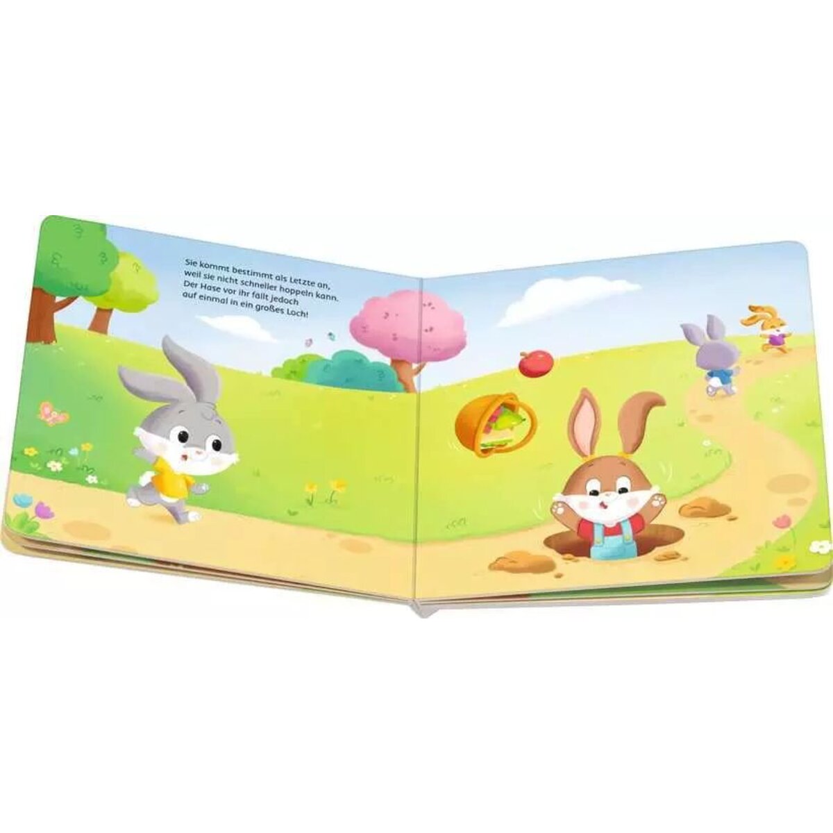 Häschen Fanny freut sich schon auf das Fest bei der freundlichen Möhre Lotti Karotti. Doch ausgerechnet am großen Tag verschläft sie und alle anderen Hasen haben sich bereits auf den Weg zum grünen Hügel gemacht. Ob Fanny sie noch einholen kann? Plötzlich fällt einer nach dem anderen in ein Loch im Boden ... Wer wohl als Erstes beim Fest ankommen wird?