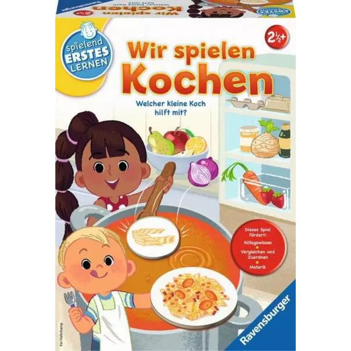 Bei Wir spielen Kochen können sich kleine Kinder selbst als Köche probieren. Reis und Erbsen oder lieber Nudeln? Alles darf in den Topf! Die Kinder erkennen und benennen die Lebensmittel und lernen verschiedene Obst- und Gemüsesorten kennen. Werden die Zutaten mit dem Löffel eingerührt, verschwinden sie durch einen raffinierten Drehmechanismus im Topf. Mit einem Zuordnungsspiel und einer Variante als Merkspiel ist Spielspaß garantiert. Zudem enthält das Spiel acht Figuren und einen kleinen Esstisch als Zubehör und bietet somit weitere Möglichkeiten für das Rollenspiel. Wir spielen Kochen aus der Reihe Spielend Erstes Lernen von Ravensburger enthält Materialien, die mit großer Sorgfalt ausgewählt und getestet sind, und bietet eine sinnvolle Unterstützung bei der Förderung Ihres Kindes.