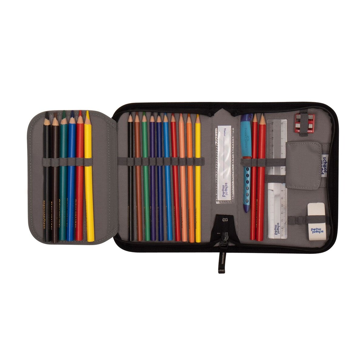 Der Schulranzen Timeless in klassischer Ranzenform bietet ein enormes Platzangebot und ist gleichzeitig super leicht und angenehm zu tragen. Ein geräumiges Hauptfach, Fronttasche und große Seitentaschen sorgen für Ordnung und kinderleichtes Handling. Das 7-teilige Set enthält Ranzen, Turnbeutel, Etui (21-tlg., Markenfüllung von Eberhard Faber), Schlamperrolle, Brotdose, 3-tlg. Patchy-Set und einen Plüschanhänger "Moodie".