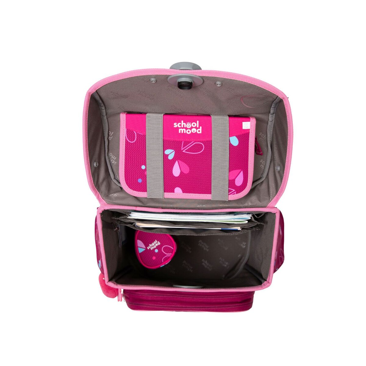 - Geräumiges Hauptfach mit integriertem Bücherfach (passend für Heftboxen); hält die schweren Bücher nah am Rücken, alles bleibt, wo es hingehört