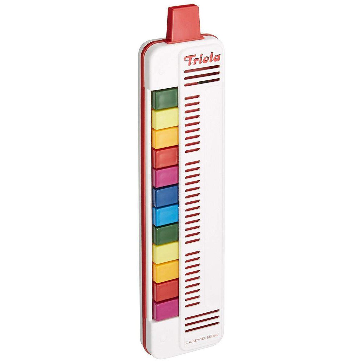 Diese Blasharmonika ist ein Instrument für Kinder zur einfachen Einführung in die musikalische Früherziehung. Das Instrument besitzt 12 Tasten, die beim Blasen und gleichzeitigem Drücken den entsprechenden Ton freigeben. Es ist sowohl Einzelton als auch Akkordspiel möglich.
