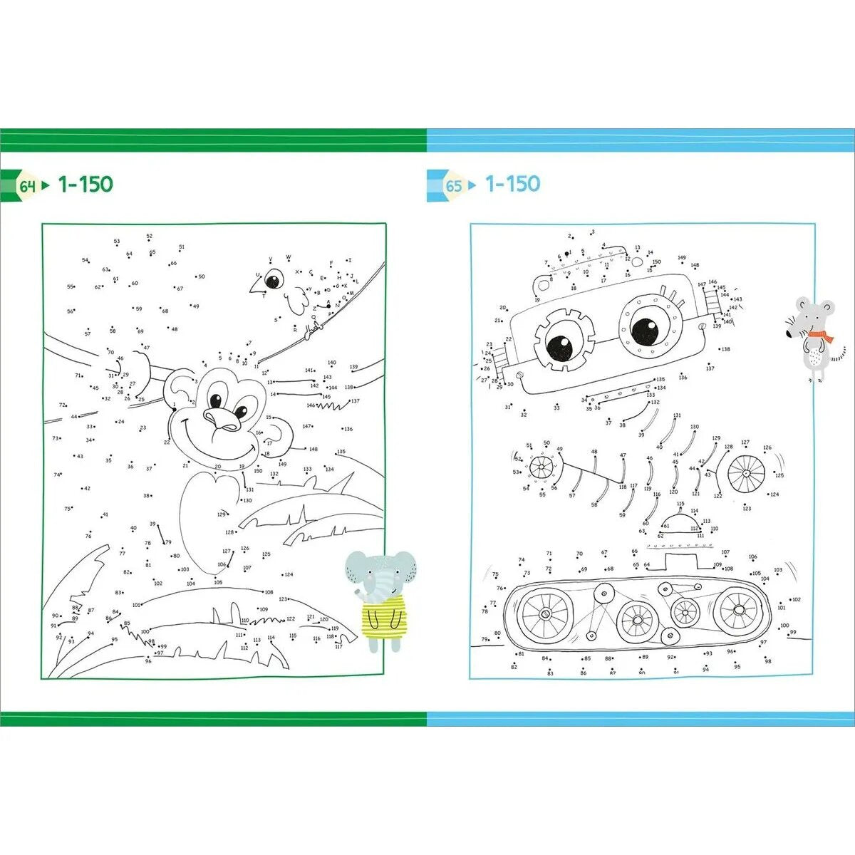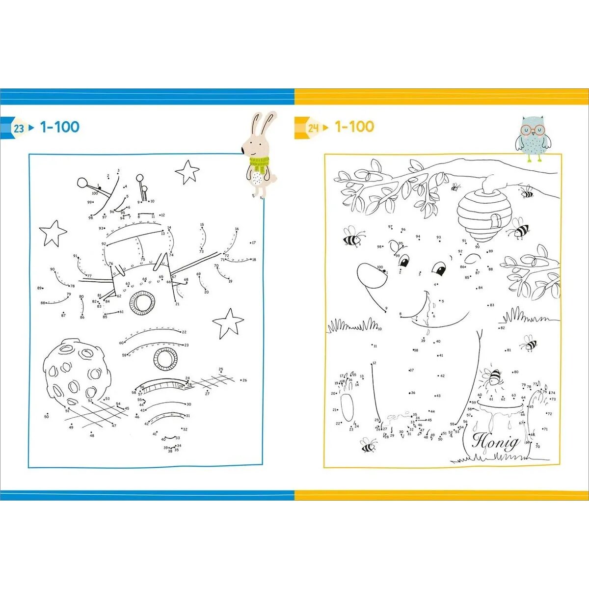 Welches Bild wird da wohl entstehen? Die Zahlen und Buchstaben zeigen den Stiften den richtigen Weg zum vollständigen Kunstwerk. Mit tollen „Punkt zu Punkt“-Rätseln in verschiedenen Schwierigkeitsstufen können Kinder spielerisch die Zahlen und Buchstaben lernen und hübsche Bilder entstehen lassen. Die fertiggestellten Bilder können abschließend natürlich noch kreativ ausgemalt werden. Doppelte Unterhaltung zum kleinen Preis!