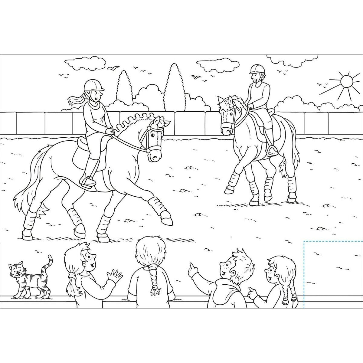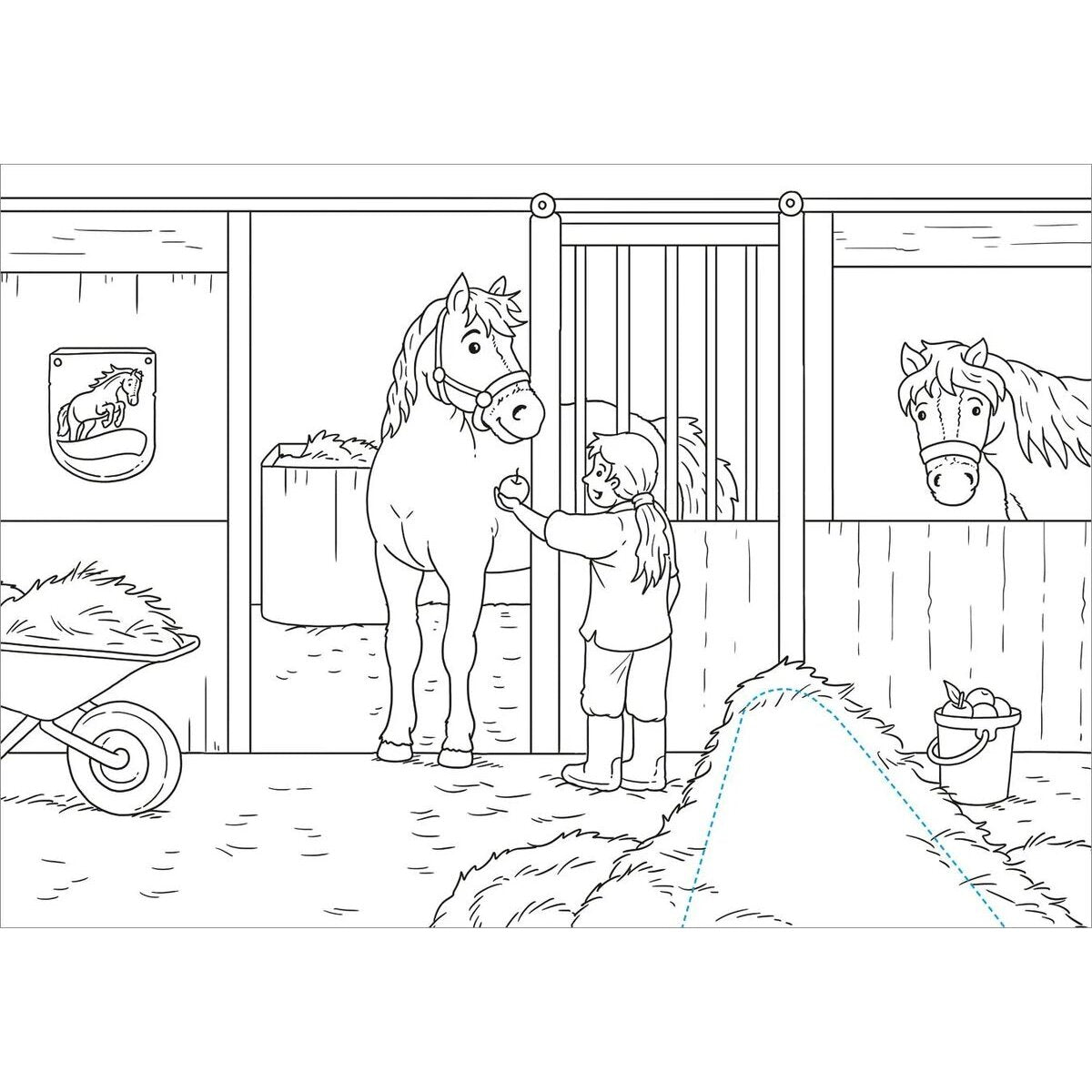 Auf dem Reiterhof ist viel los! Die Pferde und Ponys wollen ausgeritten werden, der Stall ausgemistet und die Tiere gefüttert! Die vielen abwechslungsreichen Motive warten nur darauf, ausgemalt zu werden. Unter gekennzeichneten Schneideflächen verstecken sich noch viele weitere Überraschungen. Pferdefans ab 5 Jahren lernen auf spannende und motivierende Art und Weise das Ausmalen und Schneiden. Ein tolles Geschenk für Pferde-Fans ab 5 Jahren.