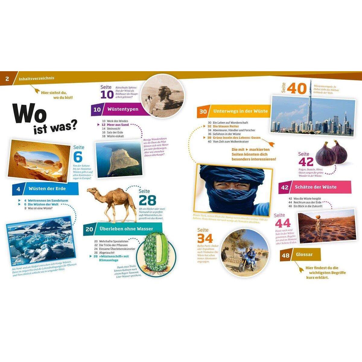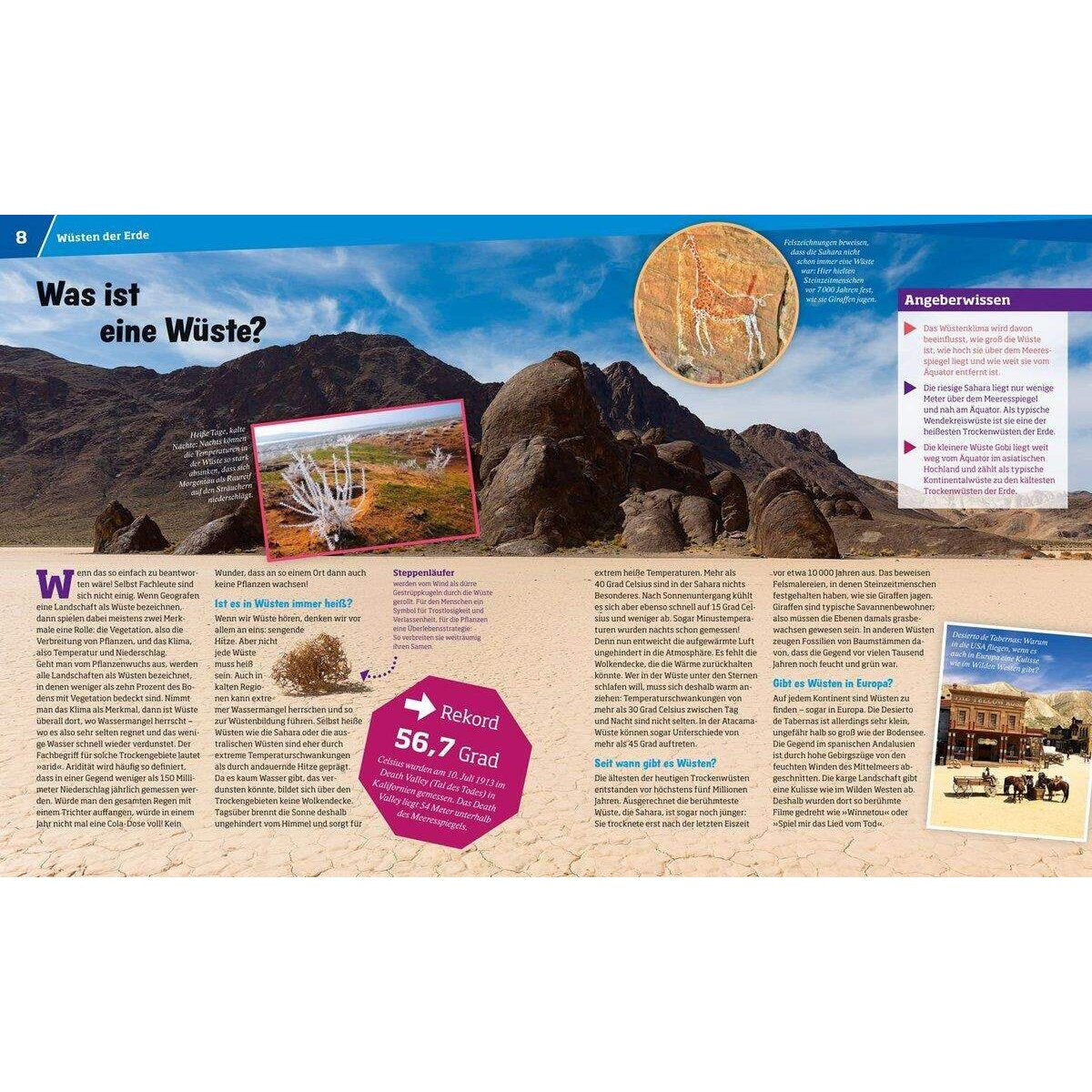 WAS IST WAS berichtet über Wüstentypen unseres Planeten, das Überleben ohne Wasser, über Nomaden und blaue Reiter, Händler und Forscher, Bodenschätze und Wüstenmetropolen.